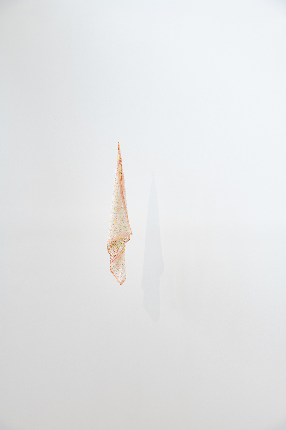 福田はこうした言葉の表現と併行して、造形制作においても独自の個性を発揮してきました。本や栞ひも、手紙、鉛筆、消しゴムなど、いずれも言葉に関わり、人の手に触れられた記憶を宿す物を素材に彫刻を施します。削り、折り、切り抜き、ほどき、糸で縫い、針穴を穿たれた物たちは元々の姿を失い、やがて小さな「粒子」となって消えゆくかのようです。こうした存在のはかなさ――生と死の「あわい」に光をあててきた福田の制作は、「アーティスト・ファイル2010―現代の作家たち」(国立新美術館、2010年)や「フラグメント―未完のはじまり」(東京都現代美術館、2014年)をはじめ、近年では「ふたつのまどか―コレクション×5人の作家たち」(DIC川村記念美術館、2020年)、「雰囲気のかたち―見えないもの、形のないもの、そしてここにあるもの」(うらわ美術館、2022年)、「旅と想像/創造 いつかあなたの旅になる」(東京都庭園美術館、2022年)などのグループ展を通して高く評価されています。